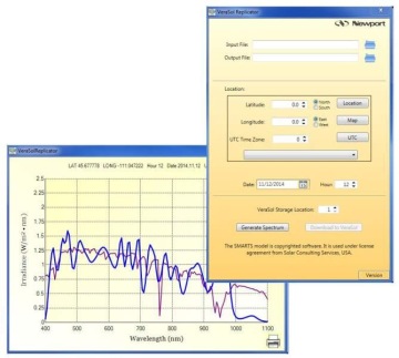V našem sortimentu nabízíme od firmy Newport (divize Oriel), již dva solární simulátory konstruované na bázi LED. Špičkový model VeraSol-2 využívá matici LED diod, které pracují na celkem 19 různých vlnových délkách. Intenzita jednotlivých LED je nastavena tak, aby výsledné spektrum odpovídalo co nejpřesněji spektru slunce. Uvedená konstrukce nabízí ovšem ještě další nevídanou možnost: Takřka libovolné nastavení spektrální charakteristiky. Pomocí individuálního řízení jednotlivých LED diod lze takto simulovat nejen standardizované sluneční spektrum, ale i modifikované spektrum tak, jak je charakteristické pro libovolné geografické místo na Zemi v libovolném čase. Přiložený software umožňuje zadat geografické koordináty a čas, z čehož automaticky vypočítá a nastaví sluneční spektrum na daném místě a v daném čase.
